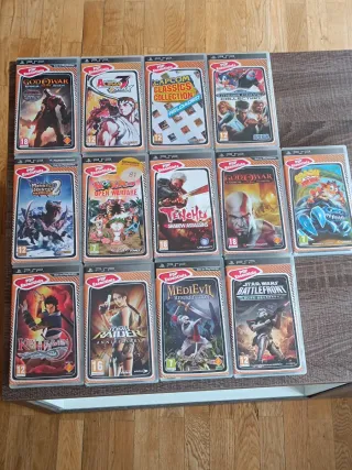 Colección de juegos para PSP. Preguntar por cada juego o por varios a la vez -Crash Tag Team Racing -Harry Potter y el Cáliz de Fuego -ModNation Racers -Gran Turismo -Peter Jackson’s King Kong: The Official Game of the Movie -Crash Lucha de Titanes -Sonic Rivals -LEGO Harry Potter -Crash: Guerra al Coco-Maníaco -LittleBigPlanet -LEGO Batman: El Videojuego -FIFA Street 2 -Assassin’s Creed Bloodlines -Sonic Rivals 2 -Breath of Fire III -Ratchet & Clank: El Tamaño Importa -Jak and Daxter: La Frontera Perdida -Pro Evolution Soccer 2013 -Michael Jackson: The Experience -Dissidia Final Fantasy -Prinny -Geronimo Stilton -The Mystery Team