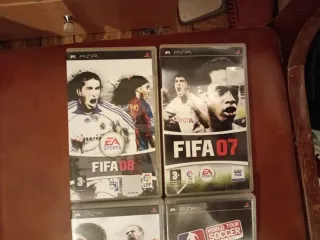 Lote de cuatro juegos para PSP. - FIFA 08 - FIFA 07 - FIFA 09 - World Tour Soccer: Fútbol Total El precio anunciado es por todos juntos, todos funcionando, tengo muchos más juegos anunciados El fifa 08 tiene una pequeña grieta en el umd (última foto) , todos los demás están sin grietas ni nada raro Si quieres alguno por separado podemos hablarlo