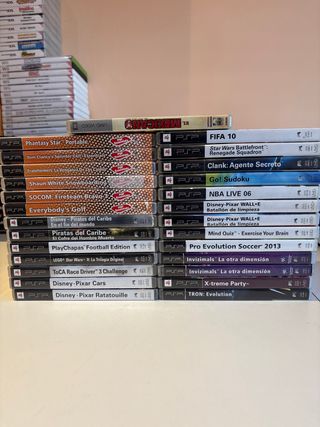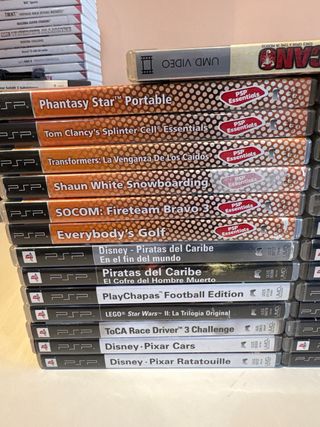 Colección de 27 juegos para PSP detallo estado por privado TODOS en español. PAL/ESP. - Phantasy Star Portable - Tom Clancy's Splinter Cell Essentials - Transformers: La Venganza De Los Caídos - Shaun White Snowboarding - SOCOM: Fireteam Bravo - Everybody's Golf - Disney Piratas del Caribe: En el fin del mundo - Piratas del Caribe: El Cofre del Hombre Muerto - LEGO Star Wars II: La Trilogía Original - TOCA Race Driver 3 Challenge - Disney Pixar Cars - Disney Pixar Ratatouille - Star Wars Battlefront: Renegade Squadron - Clank: Agente Secreto