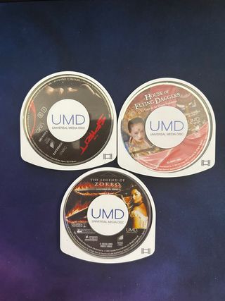 Pack de tres películas en formato UMD para PSP. - The Spirit - The Legend of Zorro - House of Flying Daggers En Buen estado y funcionando perfectamente!