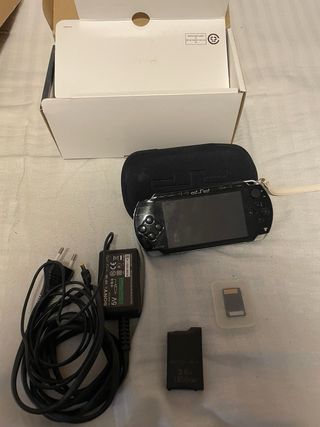 Psp slim edición piano black, completa y en buen estado, tiene un montón de juegos retro para poder jugar incorporados. Lleva todos los accesorios incluido las instrucciones sin utilizarse, cargador y demás accesorios. Se incluye funda de regalo. La consola lee los discos pero a veces le cuesta. Se acepta pago metálico, bizum, transferencia, paypal