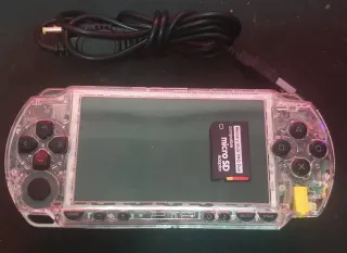 Consola portátil PSP FAT 1004 con carcasa Transparente, incluye cable de carga y datos,targeta sd de 32 gb. No tiene lector de discos. Bateria nueva a estrenar de buena calidad .Lista para llegar y jugar