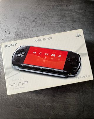 Consola portátil Sony PSP 3000 en color Piano Black. Consola Japonesa pero se puede poner en español y lee cualquier UMD lo único es que si el comprador no tiene cargador de Psp tendría que comprar un adaptador como el de la última foto para usar el japonés. Funciona perfectamente no tiene ningún fallo ni el lector hace ruido. Conserva el precinto lo cual no ha sido abierta ni toqueteada. Esta en buen estado en general lo único los manuales algunos un poco amarillos. No incluye batería. No Negociable. No Cambio. No Bizum. (Posibilidad de entrega entre La Laguna y La Orotava)