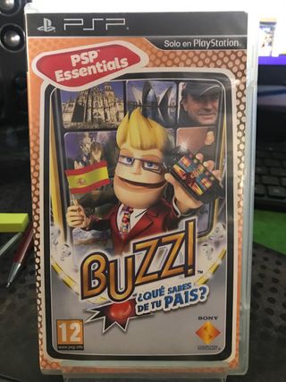 Juego Buzz!: ¿Qué sabes de tu país? para PSP en perfecto estado. Incluye el juego completo. - Más de 4000 preguntas. - Enfréntate a 15 rondas. - Compatible con amigos a través de WiFi.