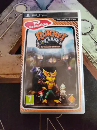 Videojuego Ratchet & Clank: El Tamaño Importa para PSP. - Edición PSP Essentials. - Juego en español. - Clasificación PEGI 7. No hago envíos. Solo lo vendo en Santa cruz de Tenerife No acepto bizum