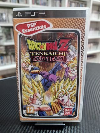 Videojuego para PSP, Dragon Ball Z: Tenkaichi Tag Team. - Edición PSP Essentials. - Clasificación por edades: 12. - Logo de Bandai Namco visible. Somos tienda física y tenemos web propia. Estamos en Canarias y no trabajamos con Wallapop. Enviamos a toda España por correos. No nos hacemos cargos de posibles gastos aduaneros.