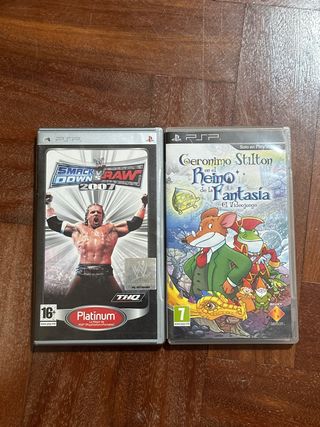 Se venden los siguiente 2 juegos de PSP en buen estado: - WWE Smackdown vs Raw 2007 - Geronimo Stilton en el Reino de la Fantasía Se entrega solo y exclusivamente los juegos. Haría precio si se cogiesen juntos en vez de por separado o junto con alguna otra cosa de mi perfil. ¡Hago envíos!