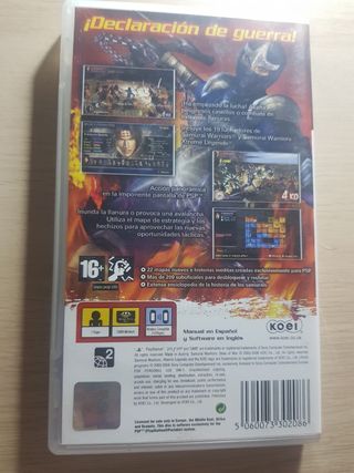 Juego en perfecto estado para PSP. TítuloSamurai Warriors: State of War. Usado en pocas ocasiones. Bien cuidado. Funciona.