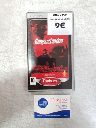 Videojuego Gangs of London para PSP en perfecto estado con caja original y manuales. VIDEOJUEGO PROBADO Y FUNCIONANDO CORRECTAMENTE. REALIZAMOS ENVÍOS A TODA ESPAÑA VENTA Y REPARACIÓN INFORMÁTICA TODAS LAS MARCAS Y MODELOS VENTA DE TELEFONÍA VENTA DE CONSOLAS Y VIDEOJUEGOS INFORMÁTICA SAN VICENTE PASEO SAN VICENTE No36 TLF: 983210092 / 678254039