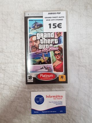 Videojuego Grand Theft Auto Vice City Stories para PSP en perfecto estado con caja original y manuales. VIDEOJUEGO PROBADO Y FUNCIONANDO CORRECTAMENTE. REALIZAMOS ENVÍOS A TODA ESPAÑA VENTA Y REPARACIÓN INFORMÁTICA TODAS LAS MARCAS Y MODELOS VENTA DE TELEFONÍA VENTA DE CONSOLAS Y VIDEOJUEGOS INFORMÁTICA SAN VICENTE PASEO SAN VICENTE No36 TLF: 983210092 / 678254039