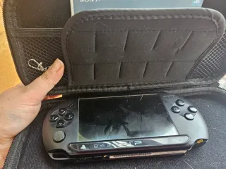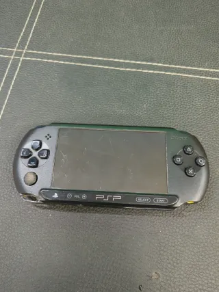 Consola portátil PSP 1000 en color negro completamente funcional. Se encuentra en buen estado, con marcas de uso como el panel de plástico de la carcasa, pero cuesta cambiarlo 2€. No incluye batería. No incluye cargador. - Incluye funda protectora negra. Precio negociable.