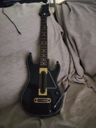 Controlador de guitarra para juegos de Guitar Hero en PSP. - Diseño en color negro. - Detalles dorados. - Incluye barra de rasgueo y botones.