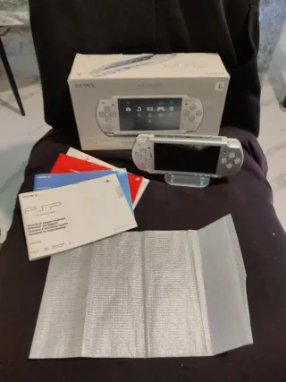 Psp silver 2004 impecable con caja y manuales se entrega sin batería ni cargador solo tengo una batería para 3 psp que uso y no la puedo dar pero