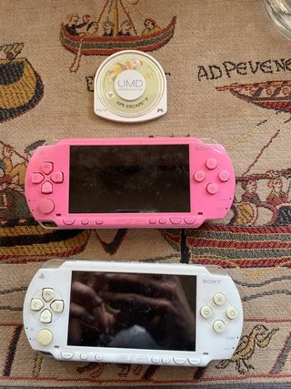 Se vende lote de dos consolas portátiles y un juego. - Consola PSP rosa. - Consola PSP blanca. - Juego UMD Ape Escape.