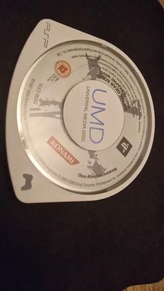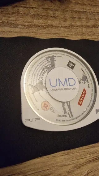 Este UMD para PSP contiene Metal Gear Solid: Digital Graphic Novel. ( NO INCLUYE CAJA , NO INCLUYE MANUAL NO INCLUYE LA CONSOLA ) --- SOLAMENTE DISCO DE JUEGO --- Presenta roces metacrilato principal , disco interior en muy buen estado de conservacion ,testado funcionando ver todas las fotos ( 10 ) version pal 🇪🇦. - Formato UMD (Universal Media Disc). - Desarrollado por Konami Corporation. - Título: Metal Gear Solid: Digital Graphic Novel. Seriedad no trueques Envios wallapop y zgz No realizo desplazamientos No ventas fuera de app No pagos bizum. ( SE ENVIA CON FUNDA RIGIDA )