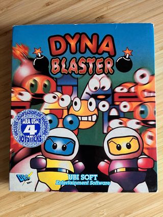Juego de PC Dynablaster de Ubi Soft. Incluye adaptador para 4 joysticks. - Caja original. - Adaptador de hardware para 4 joysticks incluido. La caja por detrás tiene la lámina de plástico protector un poquito suelta por arriba, en la zina superior. Muy poco. Rareza total. No negociable.