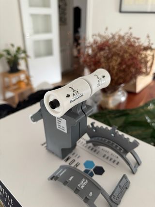 Figura coleccionable de Skylander con diseño de cañón dragón. - Base con detalles de roca y fuego. - Cañón con acabado metálico y detalles dorados. - Ojos y gema en tonos azules.