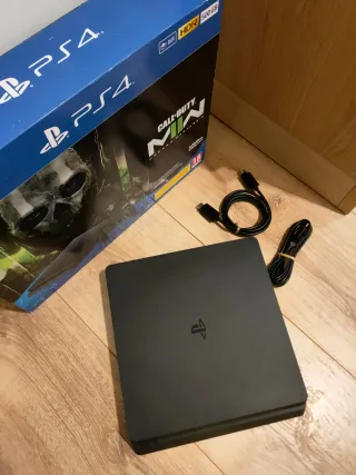 Consola PlayStation 4 Slim en color negro con 500GB de almacenamiento. - Modelo Slim. - Cable HDMI y cable de alimentación.