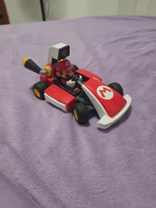 Circuito de carreras Mario Kart con cámara. - Incluye el kart de Mario. - Base para el kart con cámara. - Puertas y conos para el circuito.