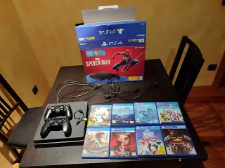 Consola PlayStation 4 Slim de 1TB en color negro/azul marino, edición especial Marvel's Spider-Man. Incluye dos mandos DualShock 4 y varios videojuegos. - Consola PS4 Slim 1TB - Edición Marvel's Spider-Man - Dos mandos DualShock 4 - Videojuegos incluidos: Plants vs. Zombies: Battle for Neighborville, Marvel's Spider-Man, ARK: Survival Evolved, The Last of Us Part II, The Family Fun Pack, y otros. El mando original en perfectas condiciones..el otro mando Raptor le faltan los plásticos de los gatillos de atrás como se ven en las fotos.. pero funciona PERFECTAMENTE! lo vendo por falta de uso Algo negociable..No trae el juego de Spider