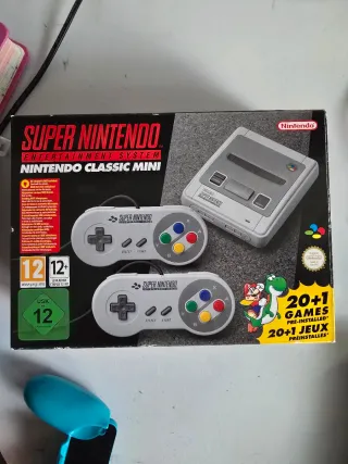 Super Nintendo Classic Mini original de Nintendo, en muy buen estado, tal y como se ve en las fotos. Incluye: ✅ Consola Super Nintendo Classic Mini ✅ 2 mandos originales ✅ 20+1 juegos preinstalados (clásicos como Super Mario World, Zelda, Donkey Kong Country, etc.) ✅ Caja original Funciona perfectamente. 📦 Entrega en mano o envío por Wallapop. 💬 Cualquier duda, ¡pregunta sin compromiso!