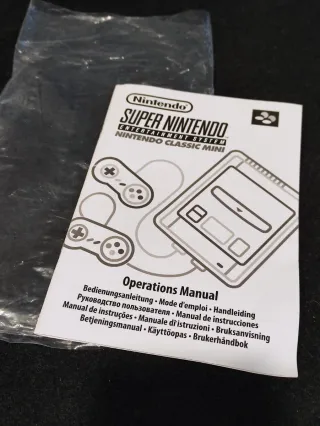 Manual de operaciones para la consola Super Nintendo Classic Mini. - Incluye instrucciones en varios idiomas. - Cubre la configuración y uso del sistema. - Lleva su funda de plastico