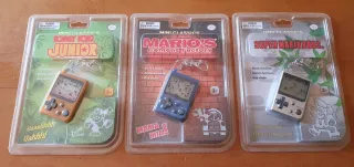 Lote de tres consolas portátiles Mini Classics de Nintendo, precintadas de fábrica. Cada unidad incluye un juego clásico. - Donkey Kong Junior 35€ - Mario's Cement Factory 35€ - Super Mario Bros. 35€ (Las 3 juntas 90€)