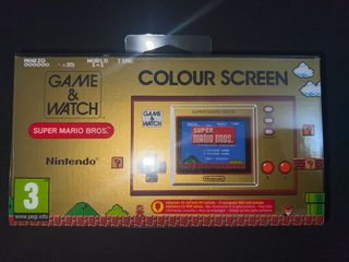 Consola portátil Game & Watch de Nintendo, edición Super Mario Bros. El embalaje está precintado. - Pantalla a color. - Incluye el juego Super Mario Bros. - Diseño dorado.