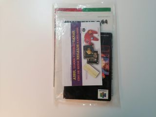 Lote de manuales y accesorios para la consola Nintendo 64. - Manual de instrucciones Nintendo 64. - Folleto de bienvenida al Club Nintendo. - Tarjeta de suscripción gratuita al Club Nintendo. - Folleto ¡Enhorabuena! Ya tienes tu Nintendo 64. - Manual de instrucciones Super Mario 64. - Folleto Abre, llama y podrás ganar. - Bolsa de plástico transparente.