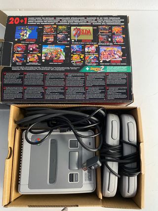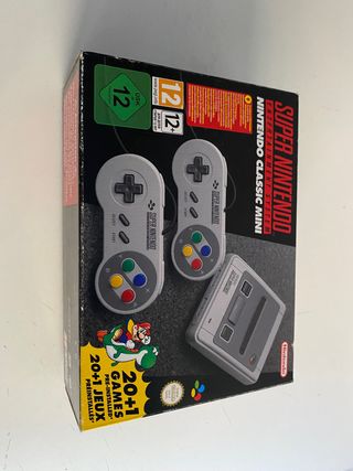 Super Nintendo Classic Mini nueva a estrenar, Incluye dos mandos originales y un mando inalámbrico Turbo. ¡Disfruta de más de 300 juegos clásicos! - Consola SNES Mini nueva. - Dos mandos originales incluidos. - Un mando inalámbrico Turbo Subsonic adicional. - 300 juegos preinstalados. - además del mando inalámbrico de regalo - también un Movistar car nuevo y precintado de - de regalo también. - doy preferencia a la venta en mano así se - puede comprobar todo en persona.