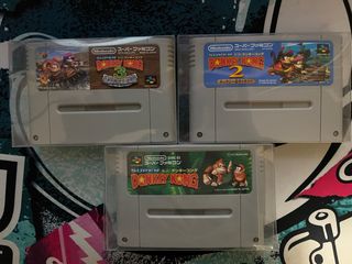 Pack de tres cartuchos de Super Donkey Kong para Super Famicom (SNES). - Super Donkey Kong 3: Nazo no Kuri-matsu - Super Donkey Kong 2: Diddy & Dixie - Super Donkey Kong