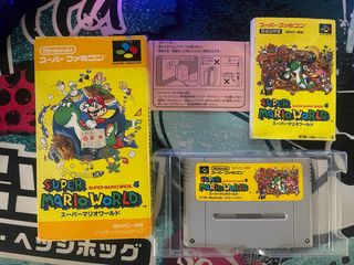 Videojuego Super Mario World para Super Famicom. Pequeña rotura en una solapa, ver fotos. - Cartucho con batería de respaldo. - Caja original. - Manual de instrucciones.