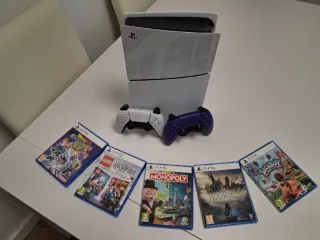 Vendo consola PlayStation 5 seminueva (muy poco uso) con accesorios y juegos. Precio negociable. El pack incluye: 1. PlayStation 5 (con lector de discos) y cableado. 2. Mando original DualSense blanco. 3. Mando original DualSense morado. 4. Videojuego "Dragon Ball: Sparking! Zero". 5. Videojuego "Hogwarts Legacy". 6. Videojuego "LEGO Harry Potter Collection (años 1–7)". 7. Videojuego "Sackboy: A Big Adventure". 8. Videojuego "Monopoly". La consola se entregará formateada de fábrica eliminando cualquier dato anterior.