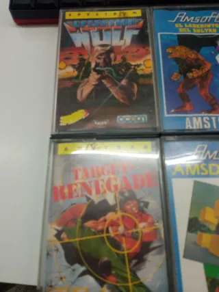 Colección de videojuegos para Spectrum y Amstrad. - Incluye títulos como Target Renegade y El Laberinto del Sultán. - Cassettes con carátulas originales.