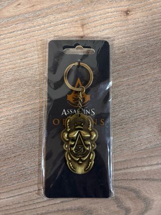 Llavero con diseño inspirado en Assassin's Creed Origins. - Detalle de escarabajo con el Ojo de Horus. - Acabado metálico en tono bronce.