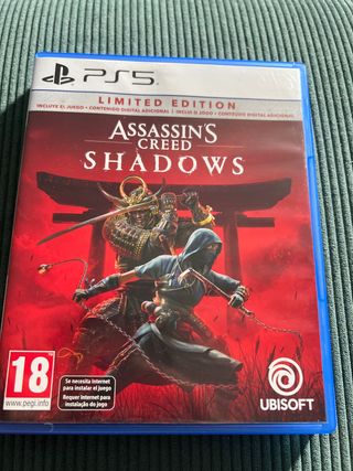 Edición limitada del videojuego Assassin's Creed Shadows para PlayStation 5. Incluye el juego base y contenido digital adicional. - Formato: Blu-ray. - Clasificación PEGI: 18. - Requiere conexión a internet para la instalación.