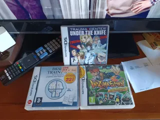 Se venden tres videojuegos para Nintendo DS. - Trauma Center: Under the Knife - Inazuma Eleven - Brain Training del Dr. Kawashima