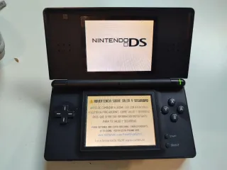 Consola portátil Nintendo DS Lite en color negro. Con 3 cartuchos de juego, el Brain Training, el Monkey y el otro cartucho con más de 30 juegos. Una de las pantallas un poco desgastada por el uso. Videoconsola, vintage