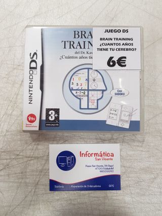 Videojuego Brain Training ¿Cuantos Años tiene tu cerebro? para Nintendo DS en perfecto estado con caja original y manuales. VIDEOJUEGO PROBADO Y FUNCIONANDO CORRECTAMENTE. REALIZAMOS ENVÍOS A TODA ESPAÑA