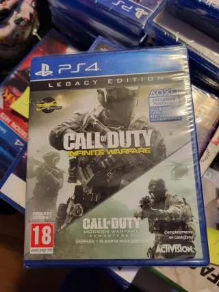 Edición Legacy de Call of Duty Infinite Warfare para PS4. Nuevo y precintado. - Incluye Call of Duty: Modern Warfare Remastered. - Campaña y 10 mapas multijugador. - Exclusiva PlayStation: Juega packs de mapas 30 días antes. - Requiere conexión a internet. - Clasificación PEGI 18.