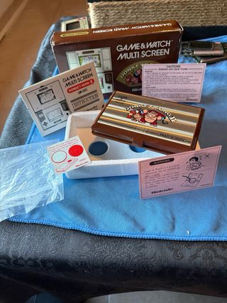 Consola portátil clásica Game & Watch. Máquina en perfecto estado tanto estético como de funcionamiento con todo original. contiene toda su documentación. En un estado envidiable. Un buen momento para unirla a tu colección. En mi perfil más máquinas. - Modelo Multi Screen. - Diseño en color marrón