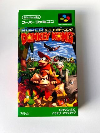 Videojuego Super Donkey Kong para Super Famicom. - Cartucho con función de batería de respaldo. - Género: Plataformas. - Región: Japón.
