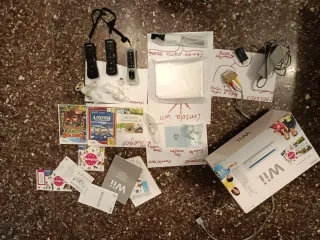 Se vende consola Wii completa, ideal para disfrutar en familia. Incluye todo lo necesario para empezar a jugar. - Consola Wii - 3 mandos Wii con wii motion plus(2 de ellos no oficiales,pero cumplen de manera idéntica la función de los originales) - Sensor Bar - Cables de conexión (alimentación y audio/vídeo) - Adaptador HDMI especial para wii - Juegos incluidos: Donkey Kong Country Returns, Wii Sports Resort, Wii Sports,wii party - Manuales y accesorios adicionales