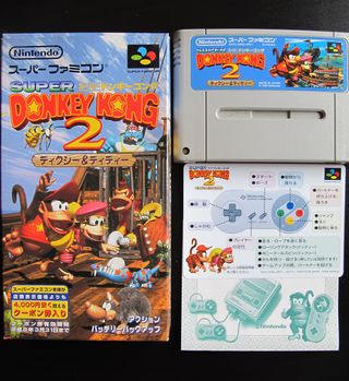 Versión japonesa de Donkey Kong Country 2 para Super Famicom. Incluye el cartucho y la caja con bandeja interior, una pequeña guía de controles y un formulario de Nintendo. Todo en muy buen estado. NO incluye el manual de instrucciones. Más juegos en mi perfil. Precios y lotes negociables. Si tienes cualquier duda o necesitas más fotos, escríbeme. Visto y jugado en RetroCabeza (YouTube, Twitch, Bluesky).