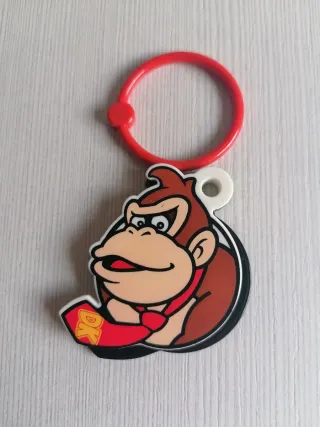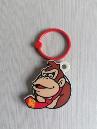 Llavero con diseño de Donkey Kong, personaje icónico de Nintendo. - Llavero con forma de Donkey Kong Kinder sorpresa. - Incluye un aro rojo para colgar. - Detalle de corbata roja con las letras DK.
