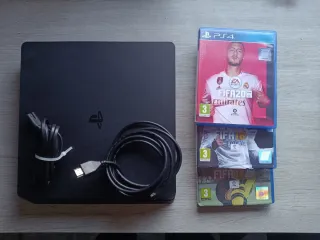 Consola PlayStation 4 en color negro. La consola enciende y funciona perfectamente. Estado estético: -Tiene pequeñas rayaduras en el exterior de la carcasa. -No incluye roturas,grietas ni laterales íntegros. Incluye: -Cable HDMI. -Cable USB para el mando (no original). - FIFA 22 - FIFA 20 Perfecta para regalar estás navidades a los más pequeños y no gastarte 150€. Alguna duda contacta. Precio honesto a lo que es para la consola.