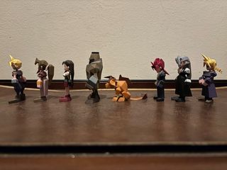 Set de las 8 primeras figuras poligonales de FF7, con la rara Cloud disfrazado. No se venden por separado. Descuento unicamente por varias compras. Entrega en mano en Guadalajara y centro de Madrid