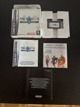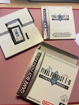 Juego completo Final Fantasy I & II Dawn of Souls para Game Boy Advance en perfecto estado. Incluye caja, manual e instrucciones. - Versión PAL Española. - Cartucho en impecable estado. - Manuales en buen estado.