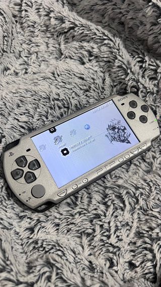 Consola portátil PSP edición especial Final Fantasy VII 10th Anniversary. El lector UMD no funciona. - Diseño plateado conmemorativo. - Gráficos de Final Fantasy VII en la carcasa.