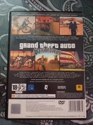 Caja original con carátula del videojuego Grand Theft Auto: San Andreas para PlayStation 2 + disco incluido (no funcional) ❗ El disco probablemente NO funciona. La consola no lo detecta (mensaje de disco incompatible). El CD no parece muy dañado, pero no se garantiza su funcionamiento. -Incluye caja y disco. -No incluye manual. Artículo pensado para coleccionistas o exposición. Ideal para coleccionistas, decoración o para quien quiera probarlo en otra consola o sepa reparalo. Se vende tal cual se describe.